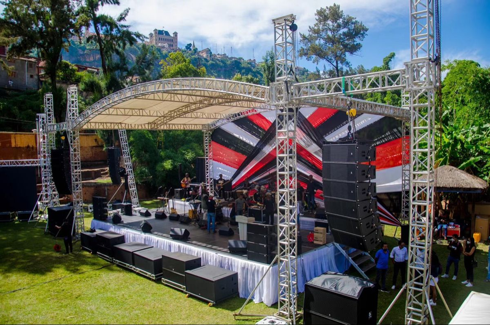 โครงหลังคากล่องไฟอลูมิเนียมสำหรับคอนเสิร์ตกลางแจ้งแบบพกพาโรงงานกวางโจว