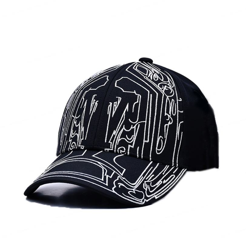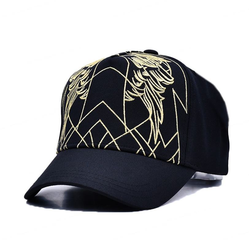 หมวกเบสบอลคุณภาพสูงจากกว่างโจว ปรับแต่งได้ หมวกเบสบอล 5 แฉก สีดำ พร้อมปักโลโก้