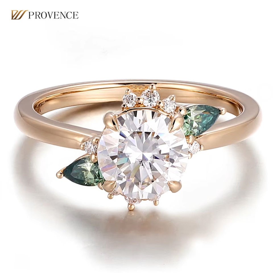 แหวนทองคำแท้ 18k ประดับเพชรโมอิสซาไนต์สีเขียว แหวนแฟชั่นสำหรับสาวๆ ผลิตโดย Guangzhou Provence Jewelry ปลอดภาษี