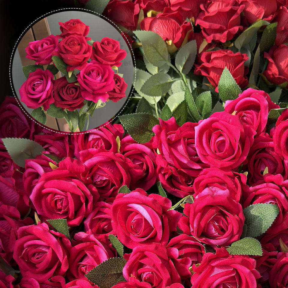 ดอกกุหลาบกำมะหยี่เทียมขายส่งจากกว่างโจว มีสินค้าในสต็อก ดอกไม้ก้านเดี่ยว สำหรับงานแต่งงาน ตกแต่งงานเทศกาล จัดดอกไม้