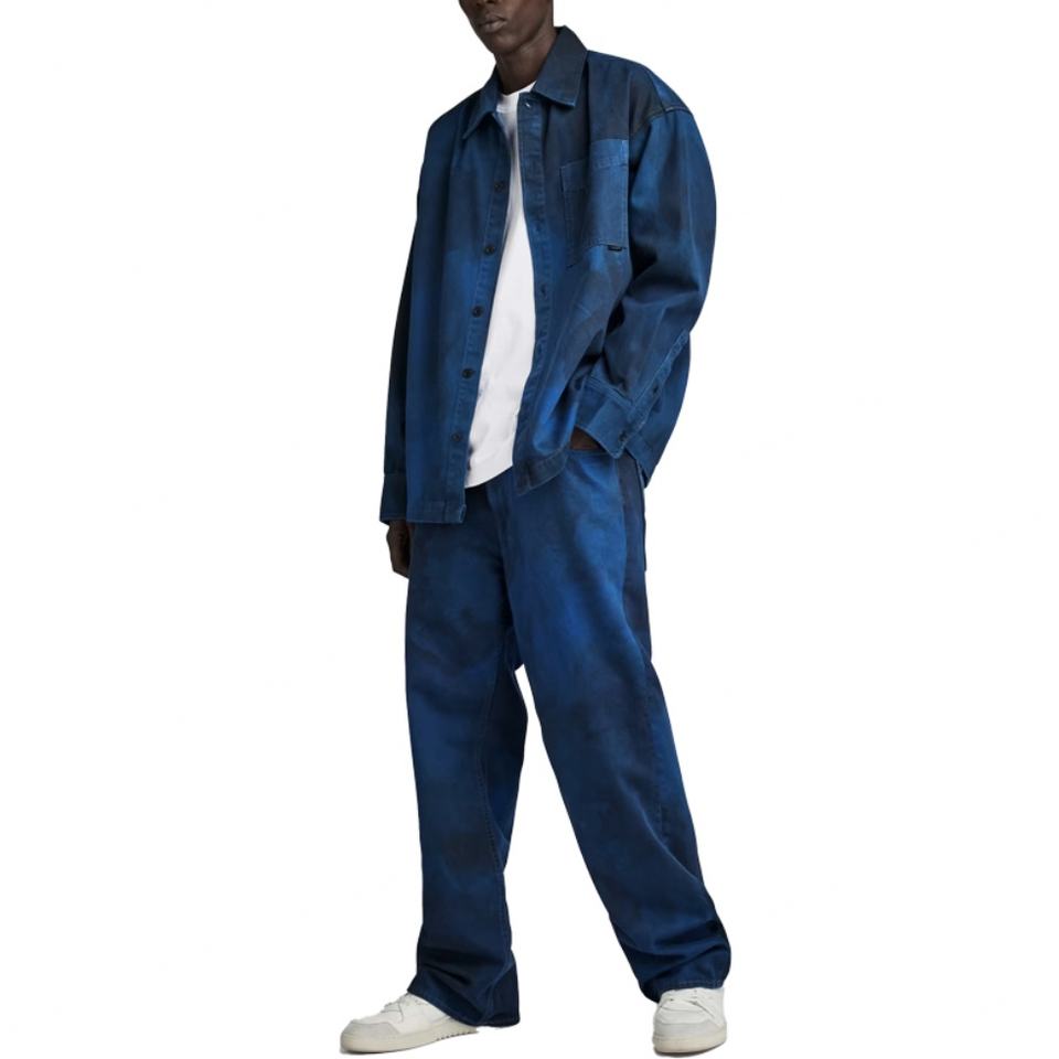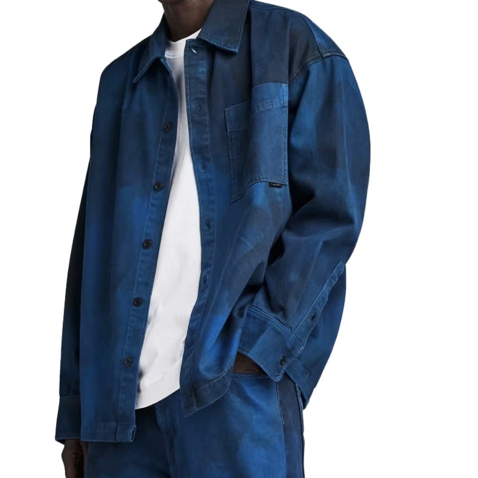 เสื้อเชิ้ตเดนิมทรงบ็อกซี่สำหรับผู้ชาย ชุดเสื้อโค้ทและกางเกงขายาวทรงหลวมแบบซักล้าง 2 ชิ้น สำหรับผู้ชาย ขายส่งจากกวางโจว