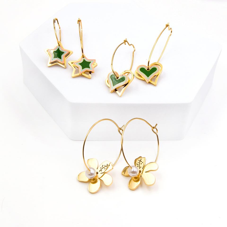 Guanzhou Jewelry Pearl 18k Gold Plated Stainless Steel Heart Flower Drop Earrings for Women