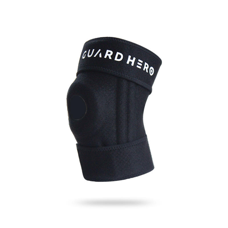สนับเข่าแบบเปิด Guard Hero สีดำ สำหรับทุกเพศ ช่วยพยุงสะบ้าหัวเข่า เหมาะสำหรับบาสเกตบอล พร้อมสปริงรัดกระชับ