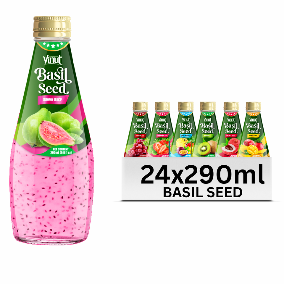 For VINUT Vietnam OEM/ODM Private Label 290ml Sugar-Free Guava Basil Seed Drink Fruit & Vegetable Juice with Free Chia Sample