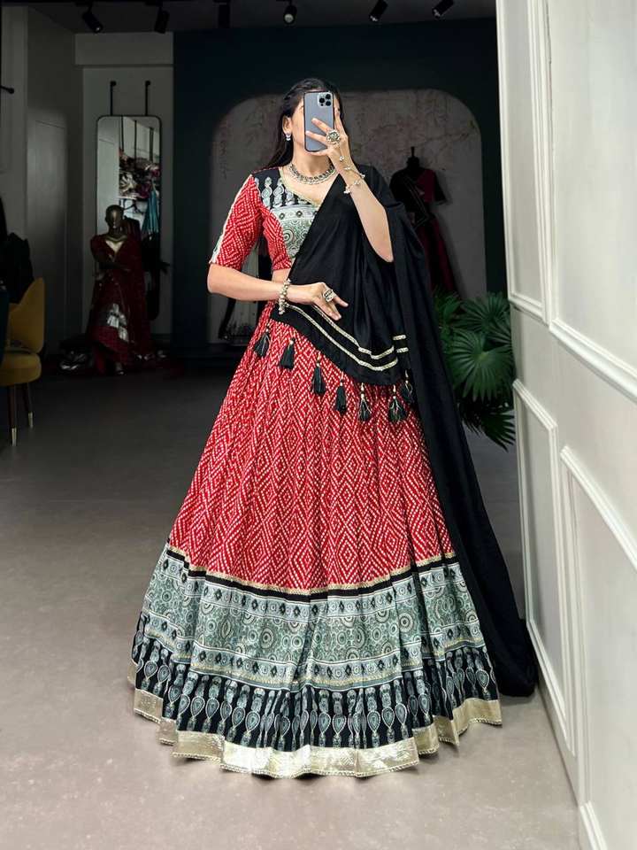 ชุดชานียาโชลีแบบกูจาราติสำหรับงานนาวราตรี ชุดเลเฮนกาโชลีแบบดั้งเดิมพร้อมสวมใส่สำหรับงานนาวราตรี