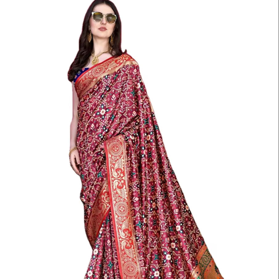 Gujarati เทรนด์สไตล์วัฒนธรรมผ้านิ่มผ้าปาโตลาผ้าไหมผ้าส่าหรีแบบไม่มีตะเข็บสำหรับงานแต่งงาน