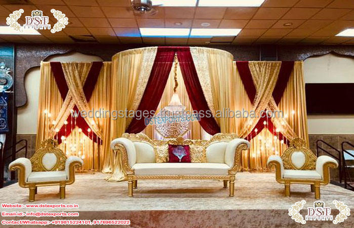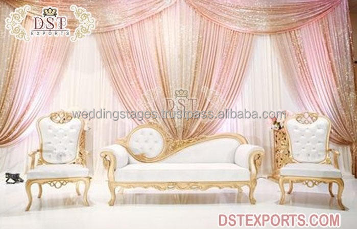 GUJARTI ชุดโซฟาเวทีงานแต่งงานแบบอินเดียดั้งเดิมทำจากทองรูปงามชุดโซฟาเวทีงานแต่งงาน