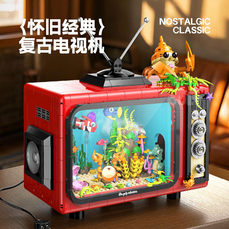 กูลี่ 60518 ตู้ปลาทีวีย้อนยุค ของเล่นตัวต่อ DIY สำหรับเด็ก ของเล่นเสริมพัฒนาการ สร้างสรรค์ ประกอบเป็นโมเดล ของขวัญ
