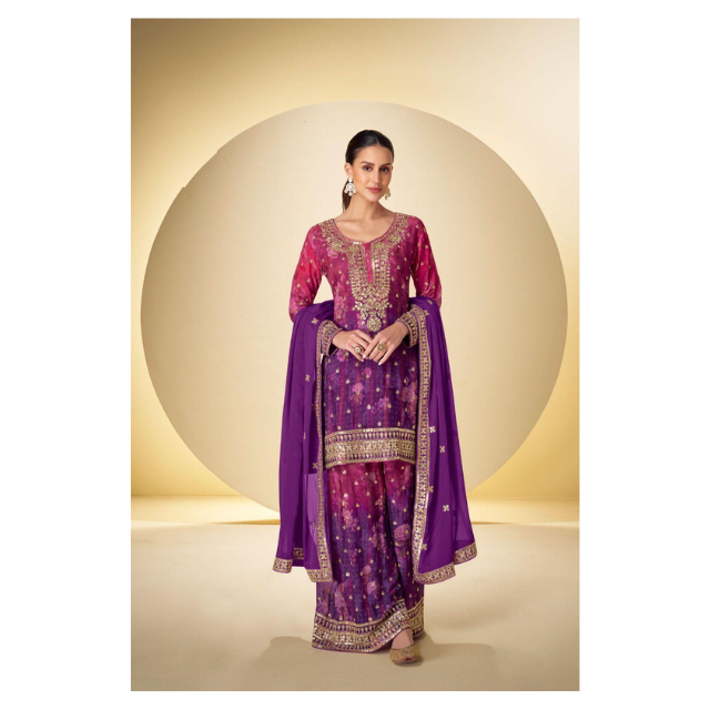 Gulkayra Designer Kanika Women's Salwar Suit Premium Chinon Silk with Digital Print, Embroidery and Sequins Work Detailing
