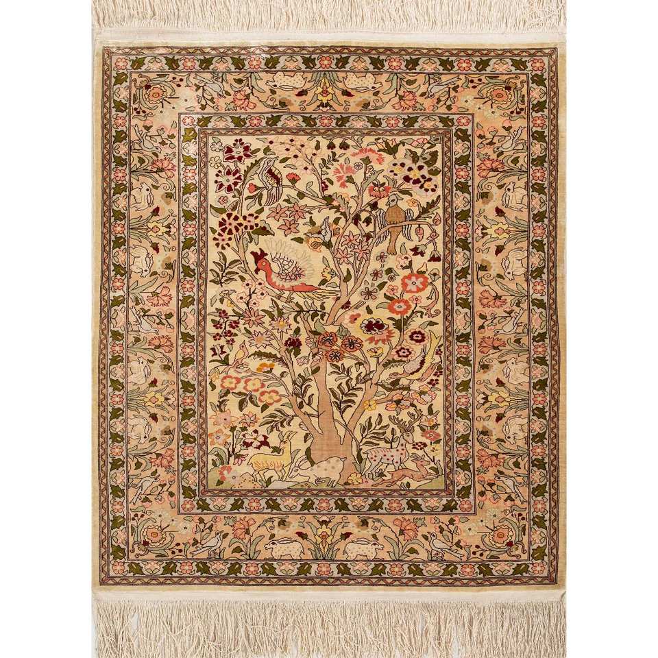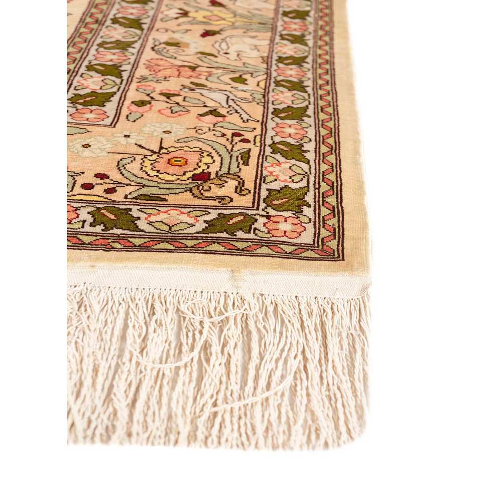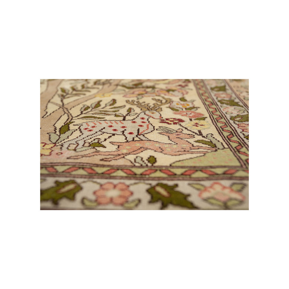 Gulmarg Ivory Hand Knotted Silk Rugs Classic Boho Floral Rectangular Design for Home for Living Bedroom Made Bamboo Silk PVC