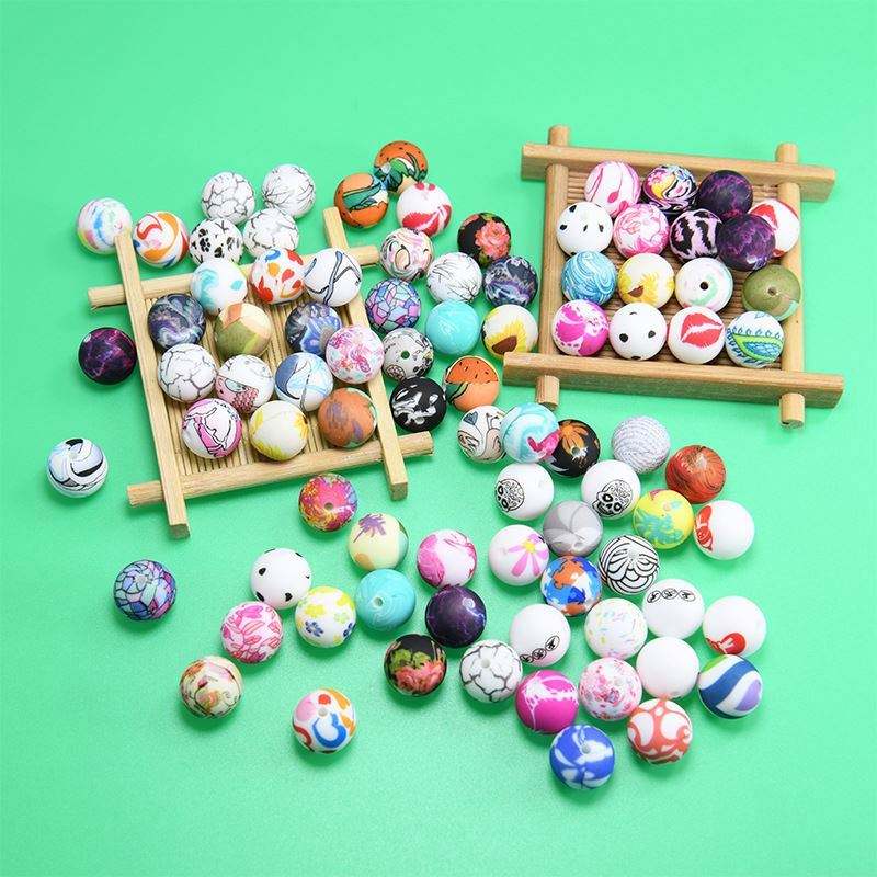 ลูกปัดซิลิโคนสีกัม 15 มม. สำหรับทำสายคล้องจุกนมหลอก DIY ขายส่ง ลูกปัดซิลิโคนสำหรับเด็ก คัดสรรอย่างเข้มงวด ลายพิมพ์น้ำ