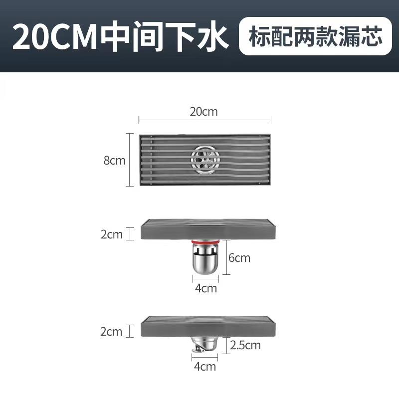 Gun GRAY 304สแตนเลสระบายน้ำที่พื้นยาวสำหรับห้องอาบน้ำห้องน้ำหนาระงับกลิ่นกายการกำจัดขนาดใหญ่ด้านข้างยาว
