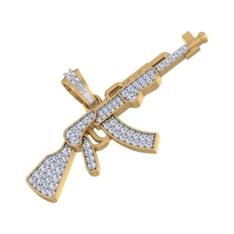 จี้ดีไซน์ตัวอักษรฮิปฮอปสำหรับทุกเพศของเด็ก10KT สีเหลืองและสีขาวทองพร้อมจี้เพชรกลมตัดตามธรรมชาติ-ของขวัญ