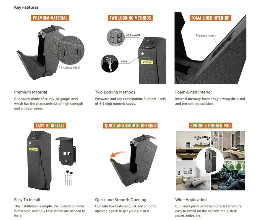 กล่องนิรภัยสำหรับติดตั้งที่กล่องใส่ปืนพกเข้าได้อย่างรวดเร็วอุปกรณ์ความปลอดภัยสำหรับ nightstand แป้นพิมพ์อัจฉริยะตัวล็อคกุญแจด้วยรหัสผ่าน
