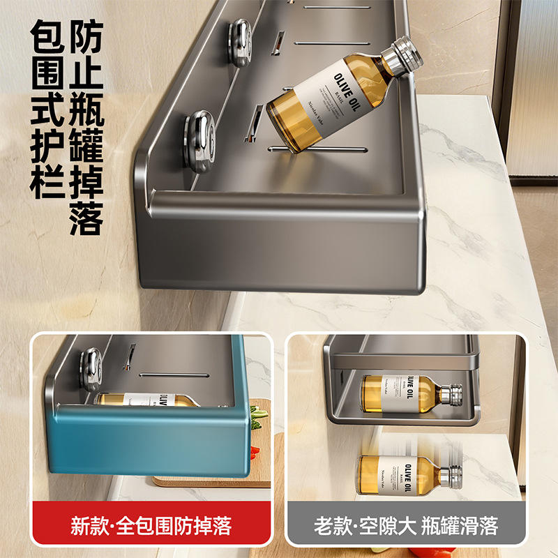ชั้นวางเครื่องเทศติดผนังสีเทากันเมทัล รูปทรงสี่เหลี่ยมผืนผ้า ทำความสะอาดง่าย ชั้นวางอเนกประสงค์สำหรับขวดเครื่องปรุง
