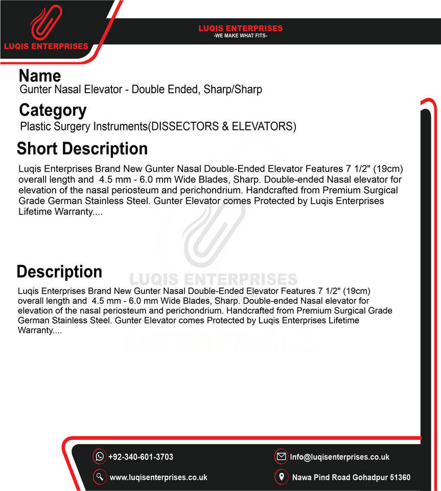 Gunter ลิฟท์จมูกคมคู่คมเครื่องมือผ่าตัดเสริมจมูกลิฟท์จมูกเครื่องมือสแตนเลส