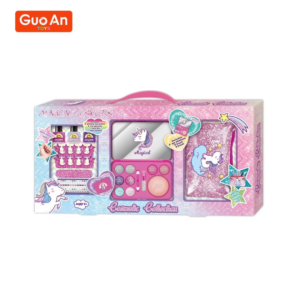 Guoan ชุดแต่งหน้าของเล่นใหม่ความงามไม่เป็นพิษชุดเครื่องสำอางแฟชั่นที่เป็นมิตรกับสิ่งแวดล้อมพร้อมกระเป๋าเครื่องสำอางสำหรับเป็นของขวัญเด็ก