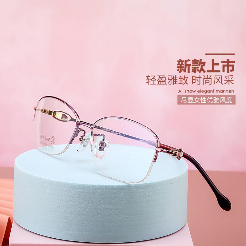 กัวดา ออพติกส์กรอบแว่นตาไทเทเนียมบริสุทธิ์สำหรับผู้หญิงทรงสี่เหลี่ยมครึ่งกรอบน้ำหนักเบาเลนส์เรซิ่นอเนกประสงค์