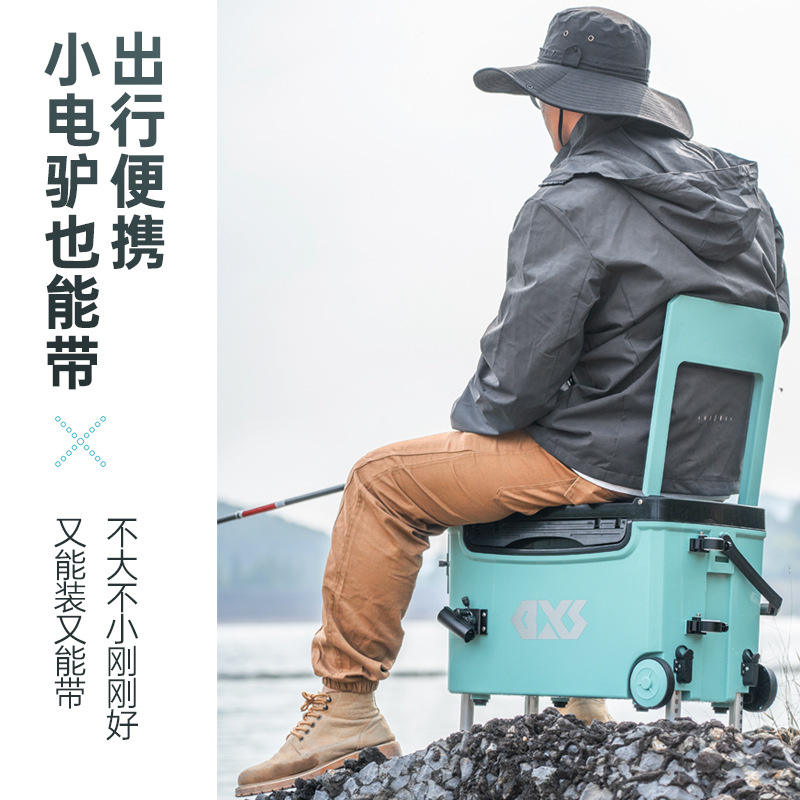กล่องเก็บความเย็นสำหรับตกปลา Gxs ขนาด 20-25 ลิตร แบบพกพาพร้อมล้อ สีฟ้า อเนกประสงค์ สำหรับเก็บอุปกรณ์ตกปลา