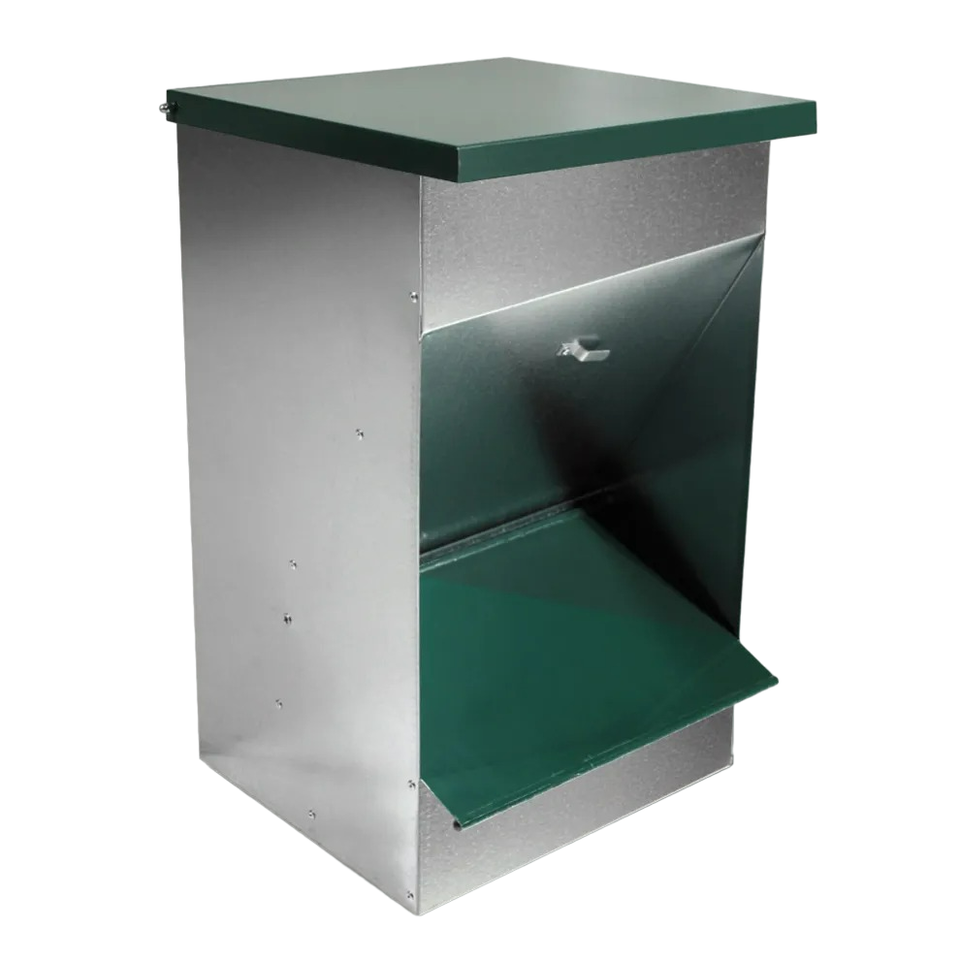 Gycpet โกเมซ Y Crespo 42L ที่ให้อาหารสุนัขชุบสังกะสีแบบแห้งพร้อมฝาปิดด้านบนด้านล่างแบบเอียงปกป้องอาหารหนูใช้ในการเกษตร