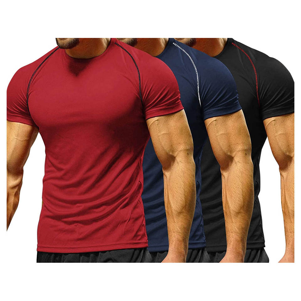 เสื้อยืดรัดรูปแขนสั้นแบบลำลองสำหรับเข้ายิมฤดูร้อนสวมใส่สบายระบายอากาศได้อย่างรวดเร็วสำหรับวันหยุดพักผ่อน