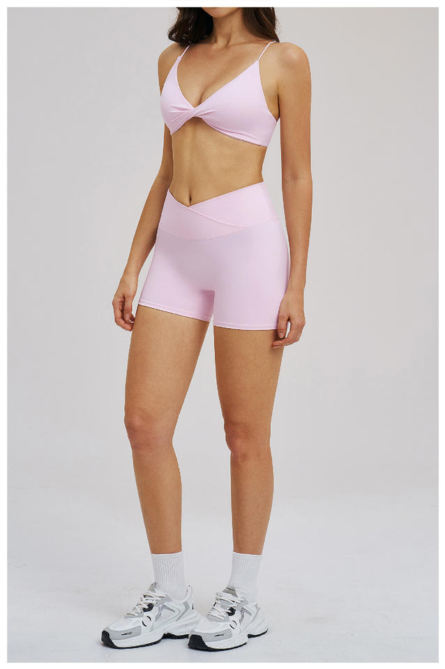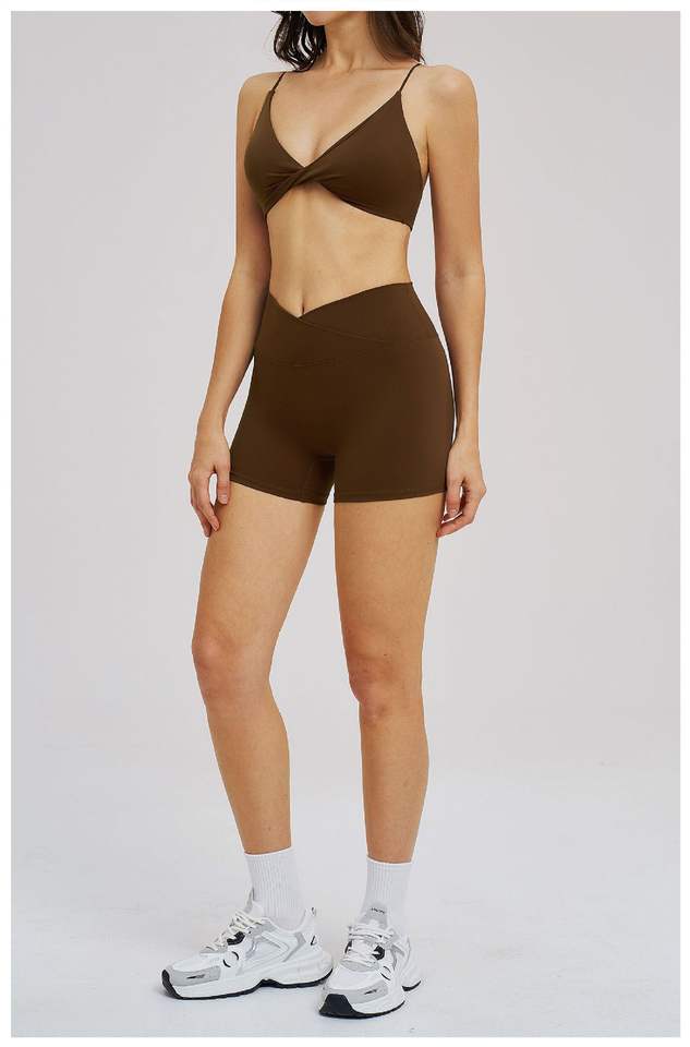 กางเกงเลกกิ้งออกกำลังกายผ้าระบายอากาศยืดได้สี่ทิศทาง พิมพ์โลโก้ตามสั่ง เนื้อผ้านุ่มสบายผิว กางเกงขาสั้นโยคะเอวสูงทรงวี
