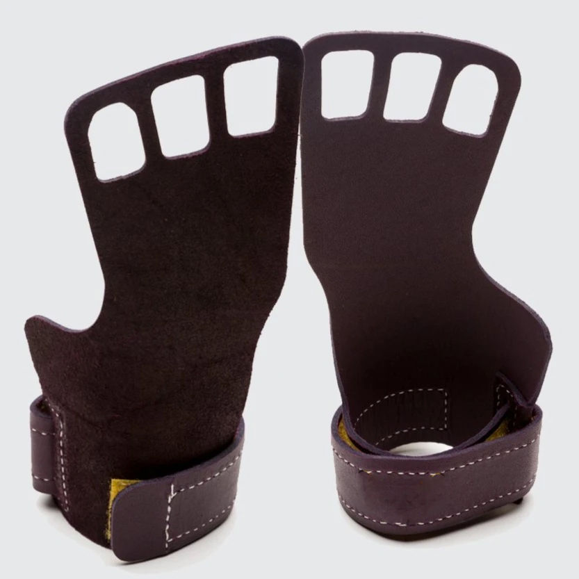 แผ่นรองฝ่ามือคาร์บอนสำหรับยิมนาสติก ยี่ห้อ Gym Fitness Calleras แบบ 3 รู และ 2 รู แบบไม่มีนิ้ว วัสดุหนังไฟเบอร์ สำหรับฝึกความแข็งแรงของมือ