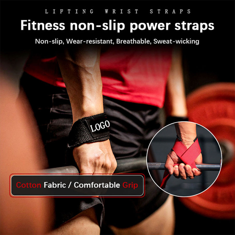 สายรัดยกน้ำหนักสำหรับเดดลิฟท์ ป้องกันการลื่น พร้อมที่รองรับข้อมือ และโลโก้แบบกำหนดเอง