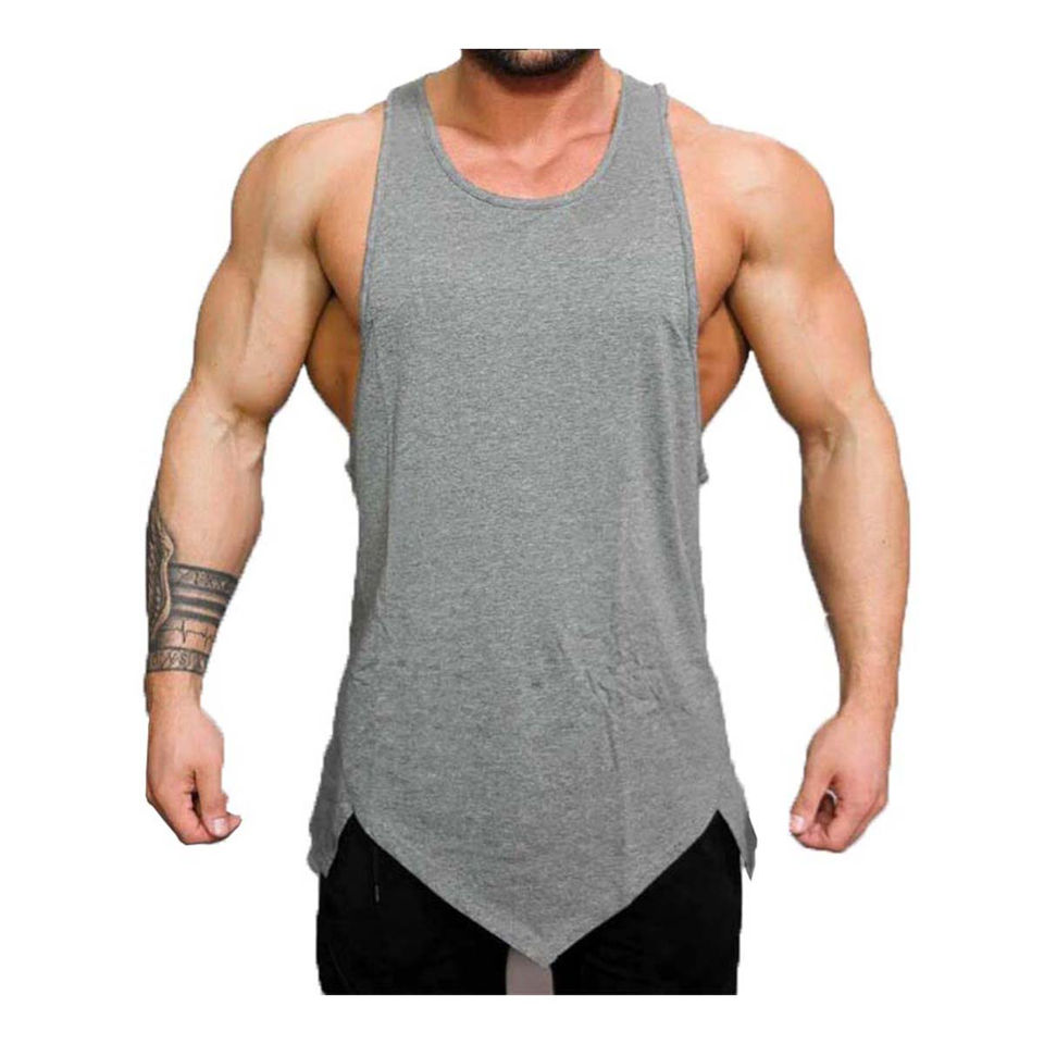 เสื้อแขนกุดคอตตอนสีพื้นสำหรับเล่นยิมของผู้ชายเสื้อกล้ามใส่เล่นฟิตเนสเสื้อกล้ามสำหรับเพาะกาย