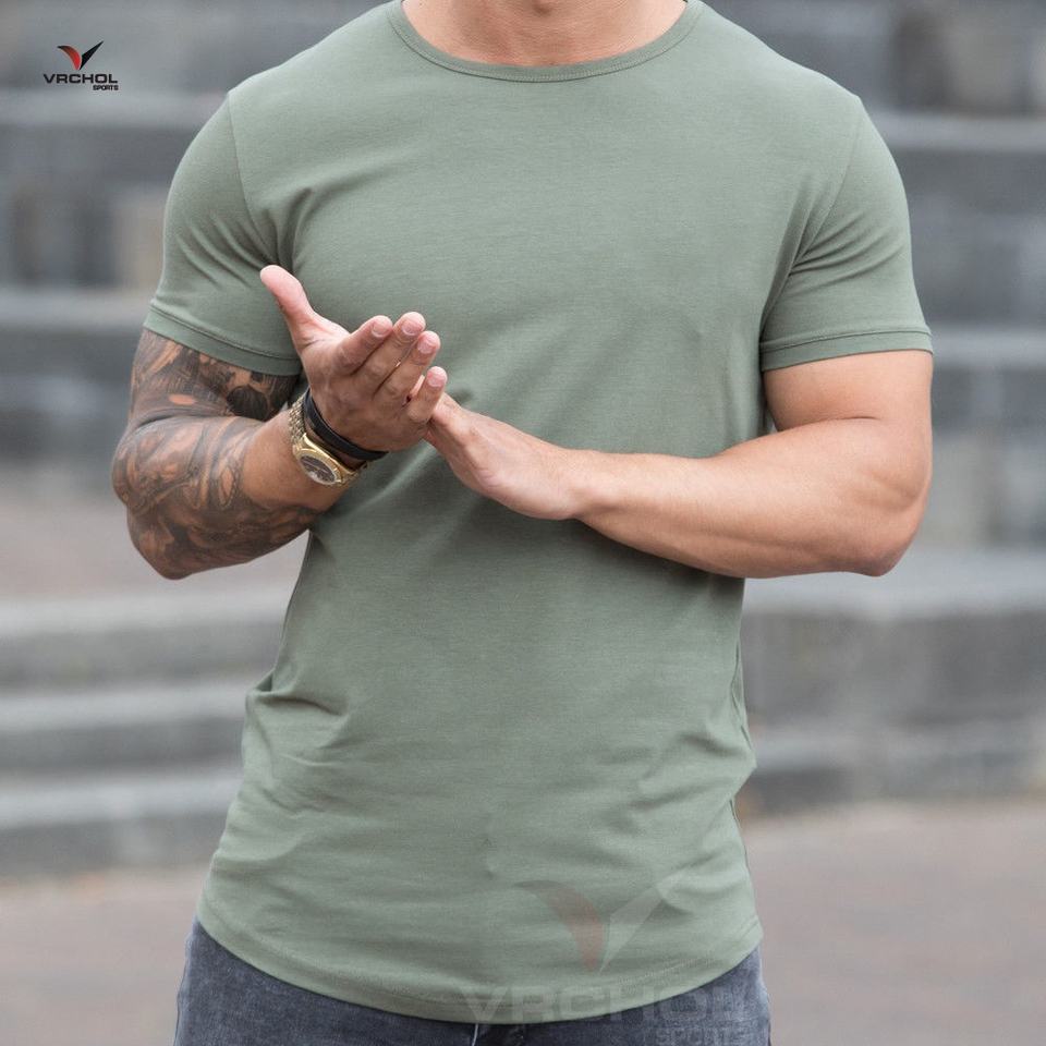 เสื้อยืดออกกำลังกายคุณภาพสูง ผ้าเนื้อนุ่มสบาย 95% คอตตอน 5% อีลาสเทน คอกลม แขนสั้น ไซส์ใหญ่ ปักลาย