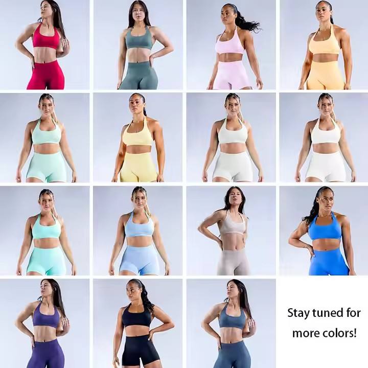 ชุดออกกำลังกายสองชิ้นสำหรับผู้หญิงเสื้อกล้ามและเลกกิ้งชุดเล่นโยคะฟิตเนสออกแบบได้ตามต้องการ