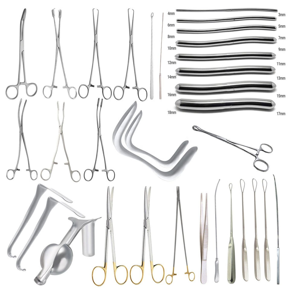 ชุดเครื่องมือผ่าตัดทางนรีเวชสำหรับการขยายช่องคลอดและการขูดโพรงมดลูก (D&C) จำนวน 22 ชิ้น แบบใช้มือ ได้มาตรฐาน MOL ราคาประหยัด ผลิตตามแบบ OEM REHMAT NOOR