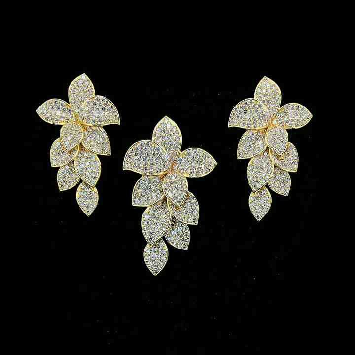 ชุดต่างหูและจี้เพชรสำหรับผู้หญิง H.A.IMPEX รุ่นฉลองครบรอบ ดีไซน์ล่าสุด ผลิตจากทอง 14 กะรัต ประดับเพชรธรรมชาติ สี I-J ความสะอาดระดับ SI ได้รับการรับรองจาก IGI