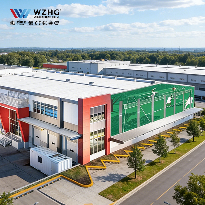 โครงสร้างเหล็กเอชบีมสำหรับสนามเทนนิสแบบขั้นสูง ทนทานต่อแรงกดของหิมะ ชุบกัลวาไนซ์ รับน้ำหนักได้นาน 50 ปี เหมาะสำหรับโรงเรียน