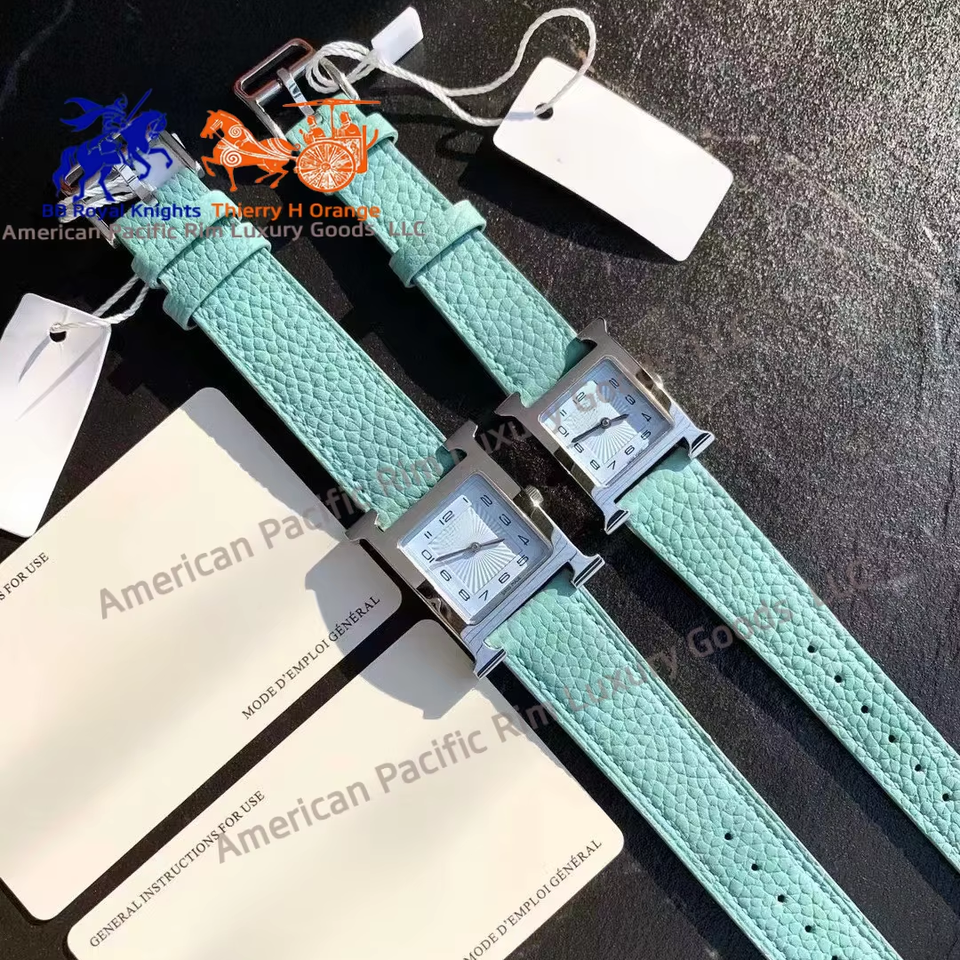 นาฬิกาควอทซ์ผู้หญิงแบรนด์ H รุ่นเกาหลี หน้าปัดสี่เหลี่ยมเล็ก ตัวเรือนสแตนเลส 316L ดีไซน์หรูหราสำหรับนักธุรกิจ กล่อง Ronda