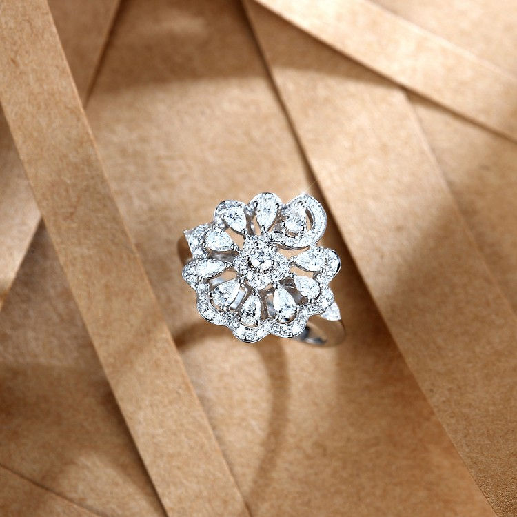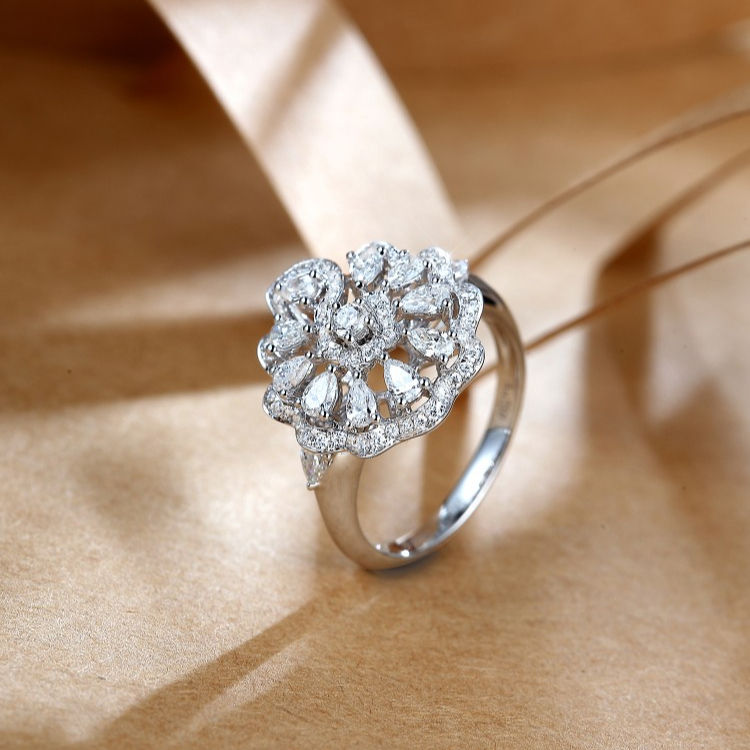 แหวนแต่งงานเพชรทรงลูกแพร์ H&F ประดับเพชรธรรมชาติ VVS 1 กะรัต ทองคำแท้ 18K 14K 9K