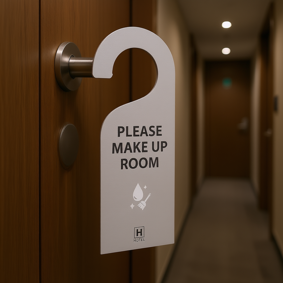 ป้ายแขวนประตูห้องพักโรงแรม H ผลิตจากโลหะทนทาน แบรนด์ OEM ของแท้จากสหรัฐอเมริกา พร้อมขอเกี่ยวสำหรับทำความสะอาด