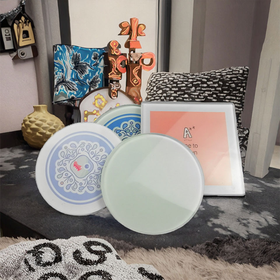 H K EXPORTS แผ่นรองแก้วกาแฟสี่เหลี่ยมแบบคลาสสิกสีขาวสำหรับงานซับลิเมชั่น แผ่นรองแก้วแก้วใสแบบเทมเปอร์ ขนาด 100 มม. รับออกแบบตามสั่ง