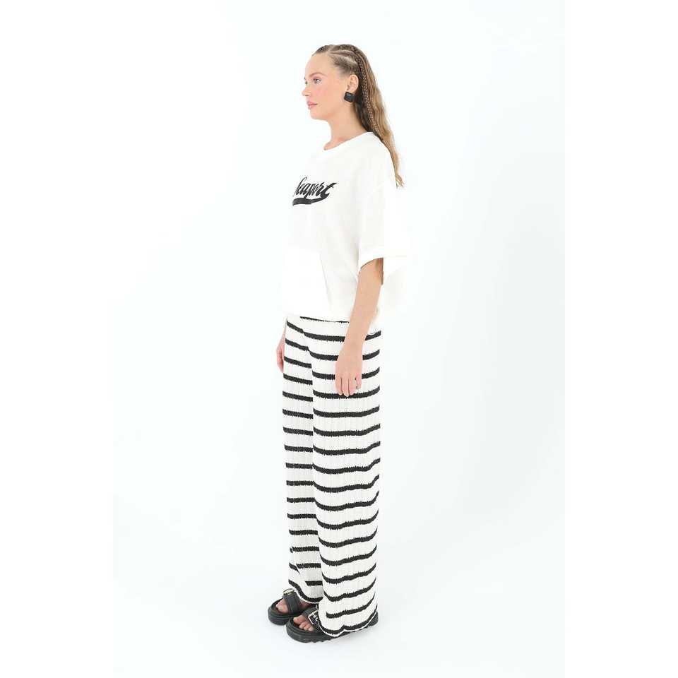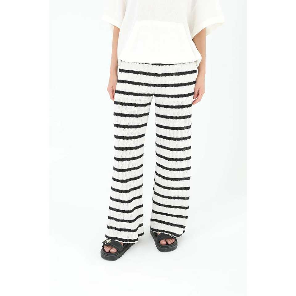 กางเกงถักนิตติ้งสำหรับผู้หญิง H&M ทรงตรง เอวกลาง สีเอครู ดำ กางเกงผ้าสเวตเตอร์ระบายอากาศได้ดี