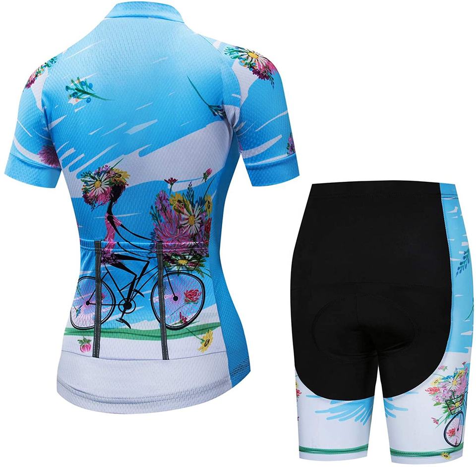 ชุดเสื้อเจอร์ซีย์ปั่นจักรยานแขนสั้น H.S.A International สำหรับผู้หญิง พร้อมกางเกงขาสั้นแบบซับลิเมชั่น ระบายอากาศได้ดี แผ่นเจล 3 มิติ กางเกงขาสั้นแห้งเร็ว