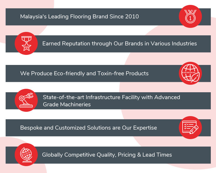 ไฟหลักฐาน, กันน้ำ, ไม่มีพิษ, เป็นมิตรกับสิ่งแวดล้อม, ทนทาน, กันลื่น, Shock absorption, ฉนวนกันเสียง