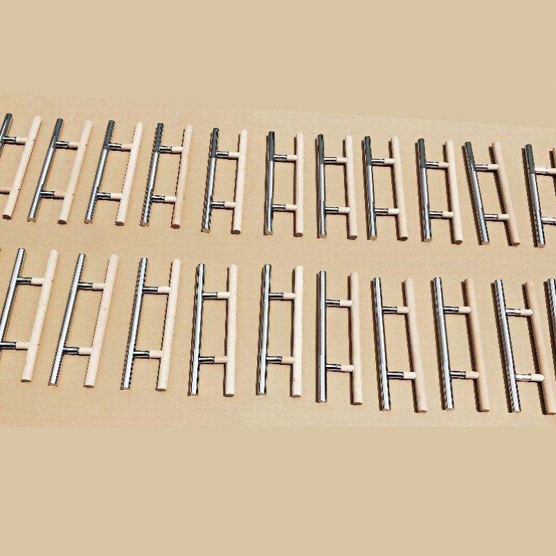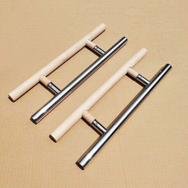 ด้ามจับแบบดึงประตูกระจกทำจากไม้และสแตนเลสรูปตัว H