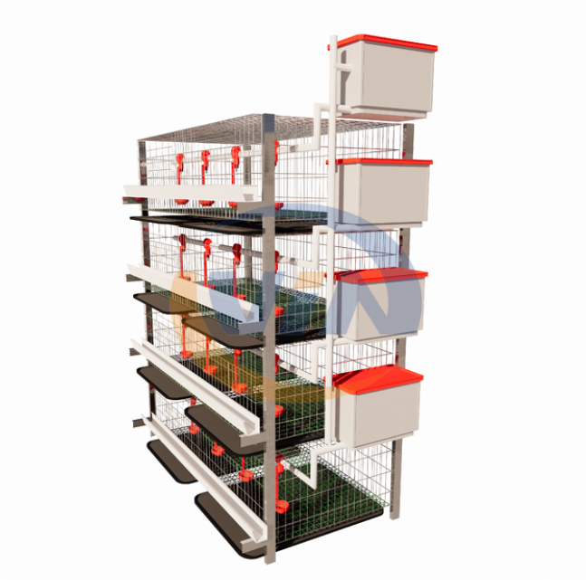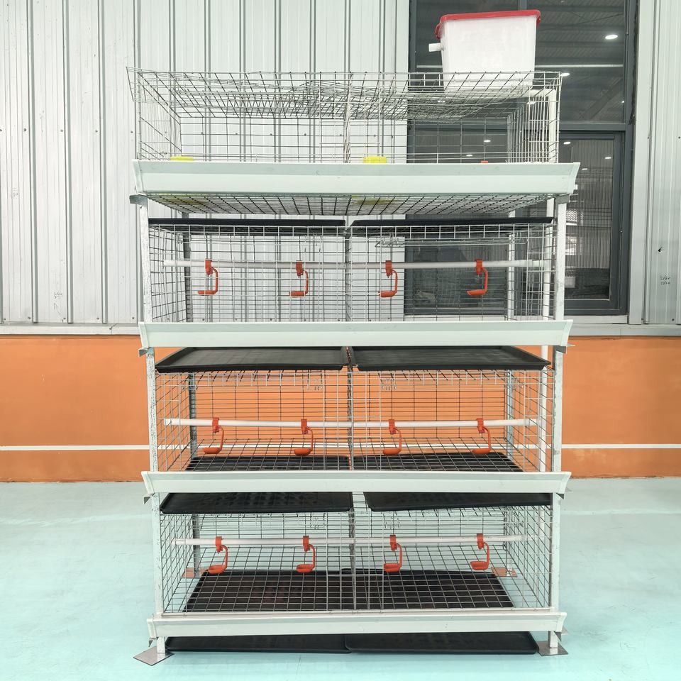กรงดักสัตว์แบบ H กรง3/4ชั้น60/80นกไก่เนื้อพร้อมที่ป้อนเครื่องดื่มและมูลสัตว์สำหรับไก่เนื้อสำหรับนก1000