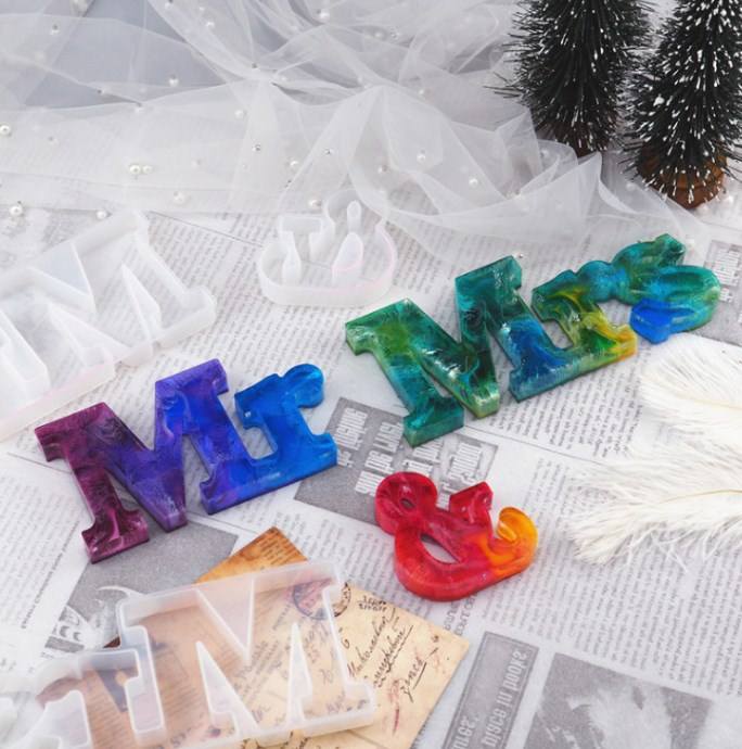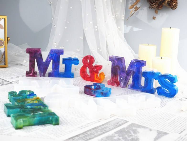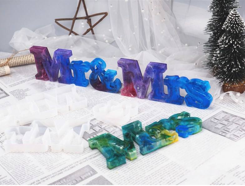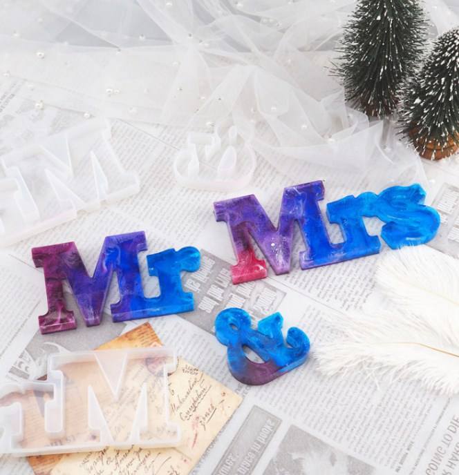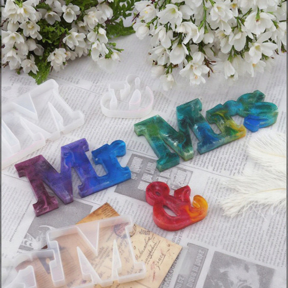 H005 DIY Mr & Mrs Mirror Silicone Mold Crystal Drop Glue Resin Moulds Letter Ornaments English Words Making Molds