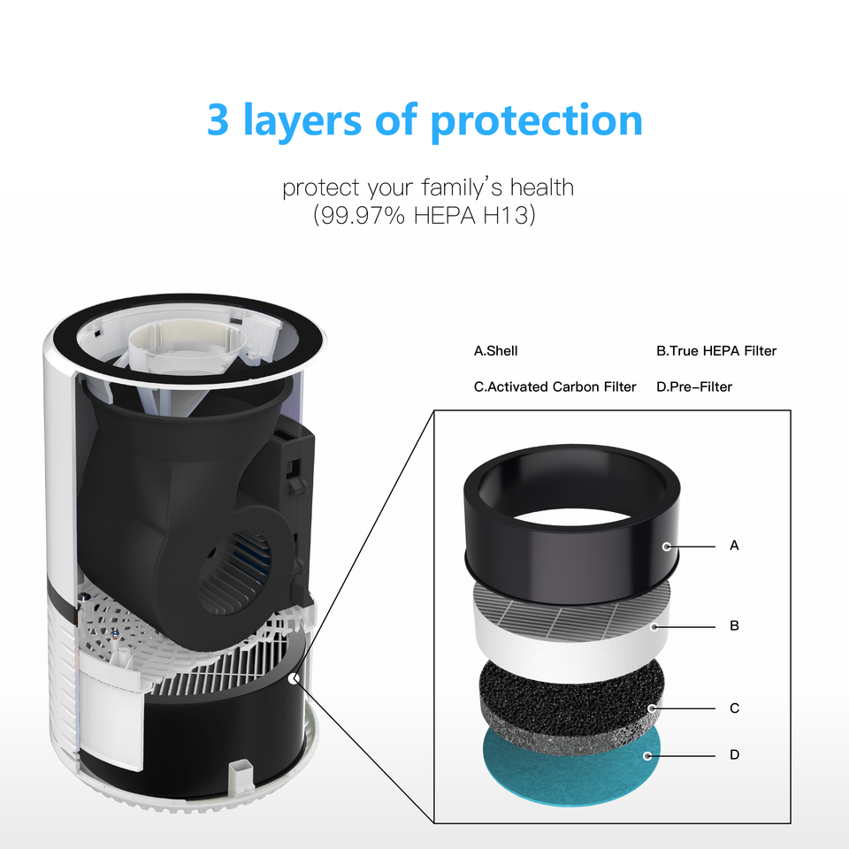 H13 ทรู HEPA เครื่องฟอกอากาศ ไส้กรองคาร์บอนกัมมันต์ กำจัดสารก่อภูมิแพ้ 99.97% ได้รับมาตรฐาน Energy Star CADR 200m/h ควบคุมผ่านแอพพลิเคชั่น