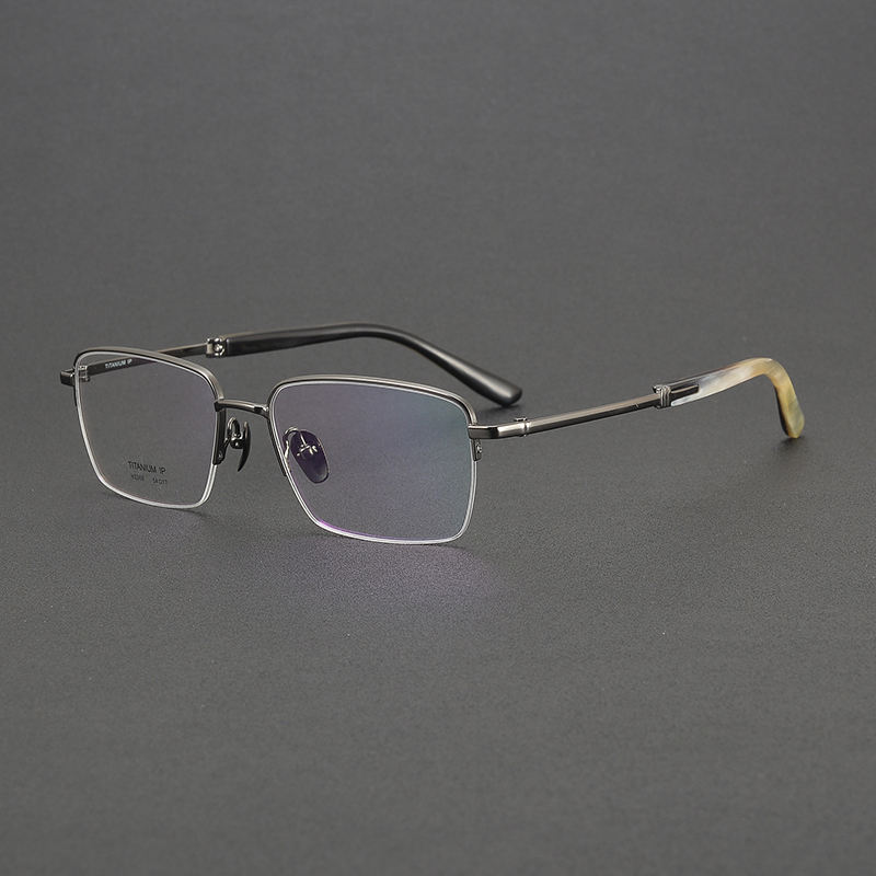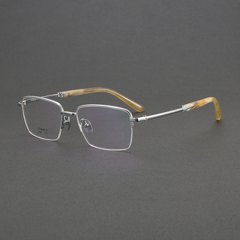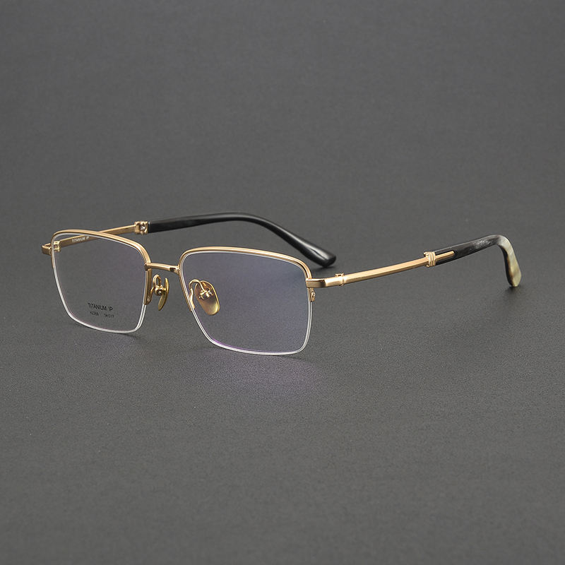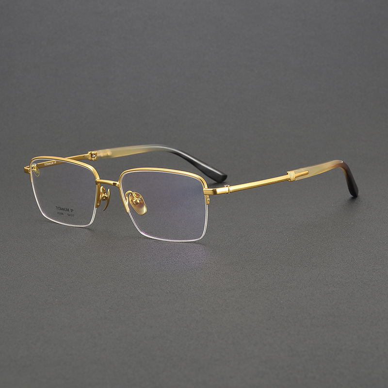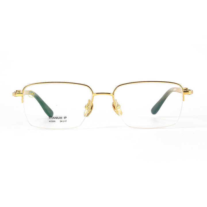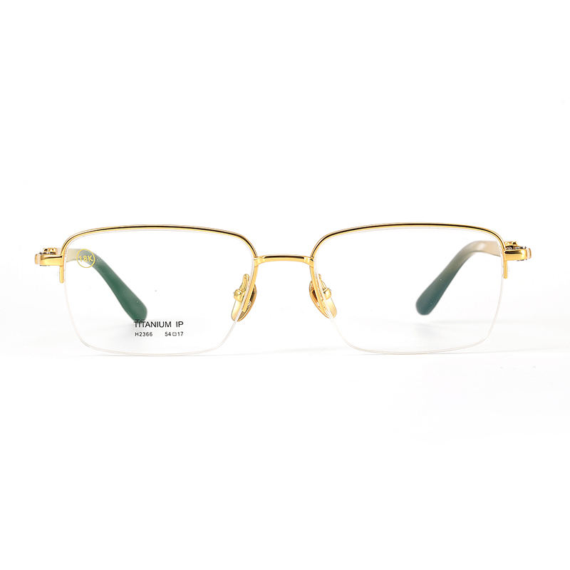 แว่นตาทำมือจากเขาควาย H2366 ชุบทอง 18K กรอบครึ่งวงกลมทรงเหลี่ยมทำจากไทเทเนียมแท้และเขาควายธรรมชาติ