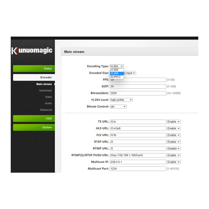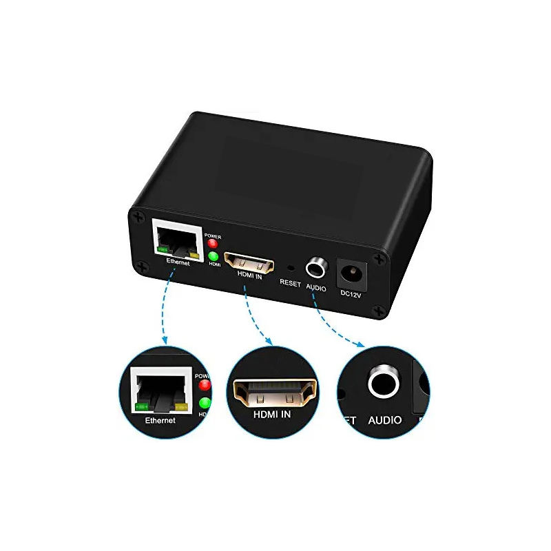 ตัวแปลงสัญญาณวิดีโอ H265 H264 สำหรับอุปกรณ์เข้ารหัสพร้อมอินพุตเสียงแบบอนาล็อก ความละเอียด 1080p60 เป็นสตรีม IP สำหรับโปรโตคอล RTMP/RTSP สำหรับคอมพิวเตอร์และโทรศัพท์