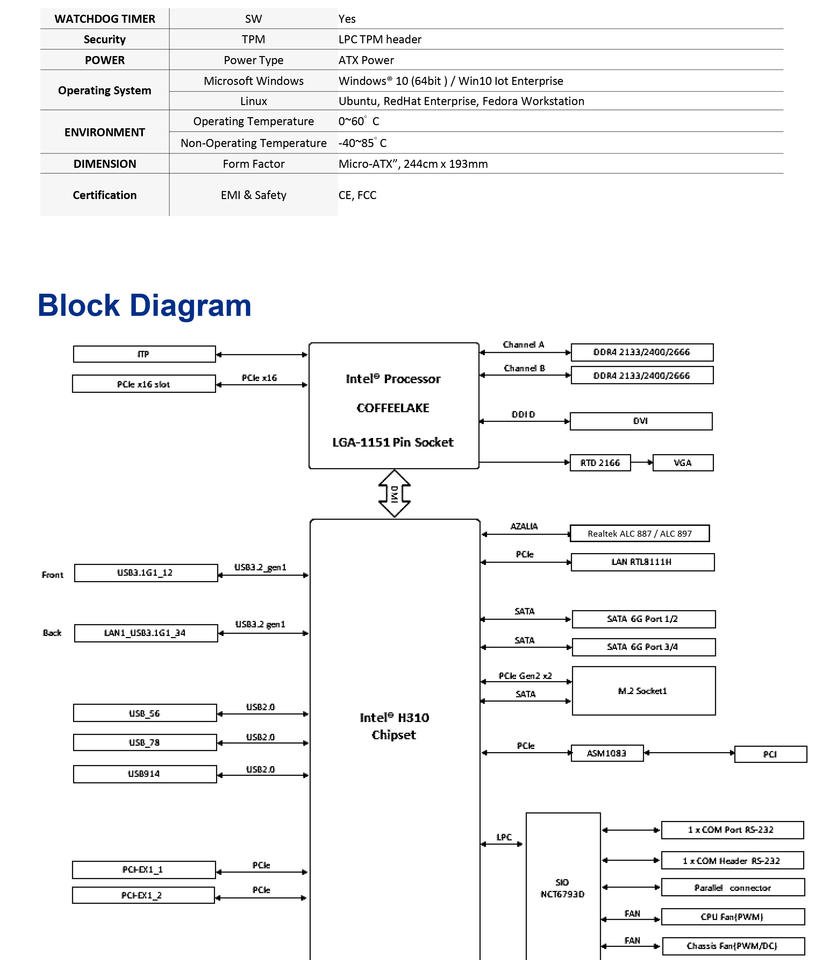 ระบบปฏิบัติการ:Win10/IoT Enterprise, Ubuntu, Red Hat Enterprise, เวิร์กสเตชัน Fedora