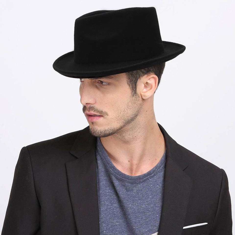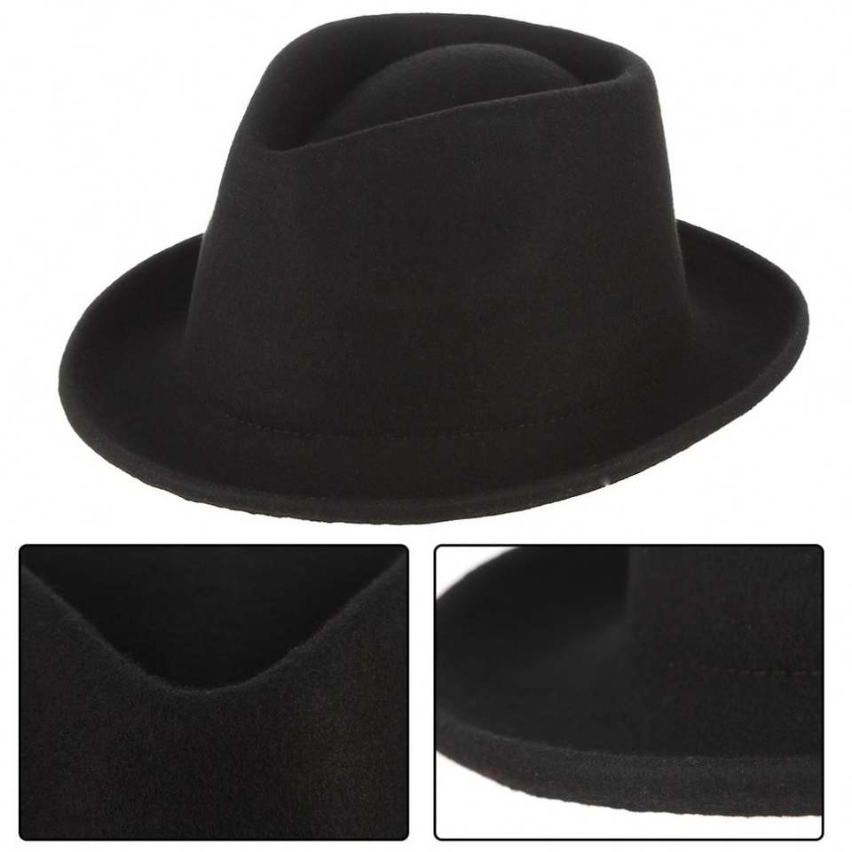 หมวกเฟโดร่าขนสัตว์สำหรับผู้ชาย รุ่น H7221 สีดำ สำหรับผู้ใหญ่ สไตล์แจ๊ส ขอบโค้ง แบบเรียบง่าย สวมใส่ได้ทุกวัน เหมาะกับกิจกรรมกลางแจ้ง ตกแต่งด้วยดอกไม้และโบว์