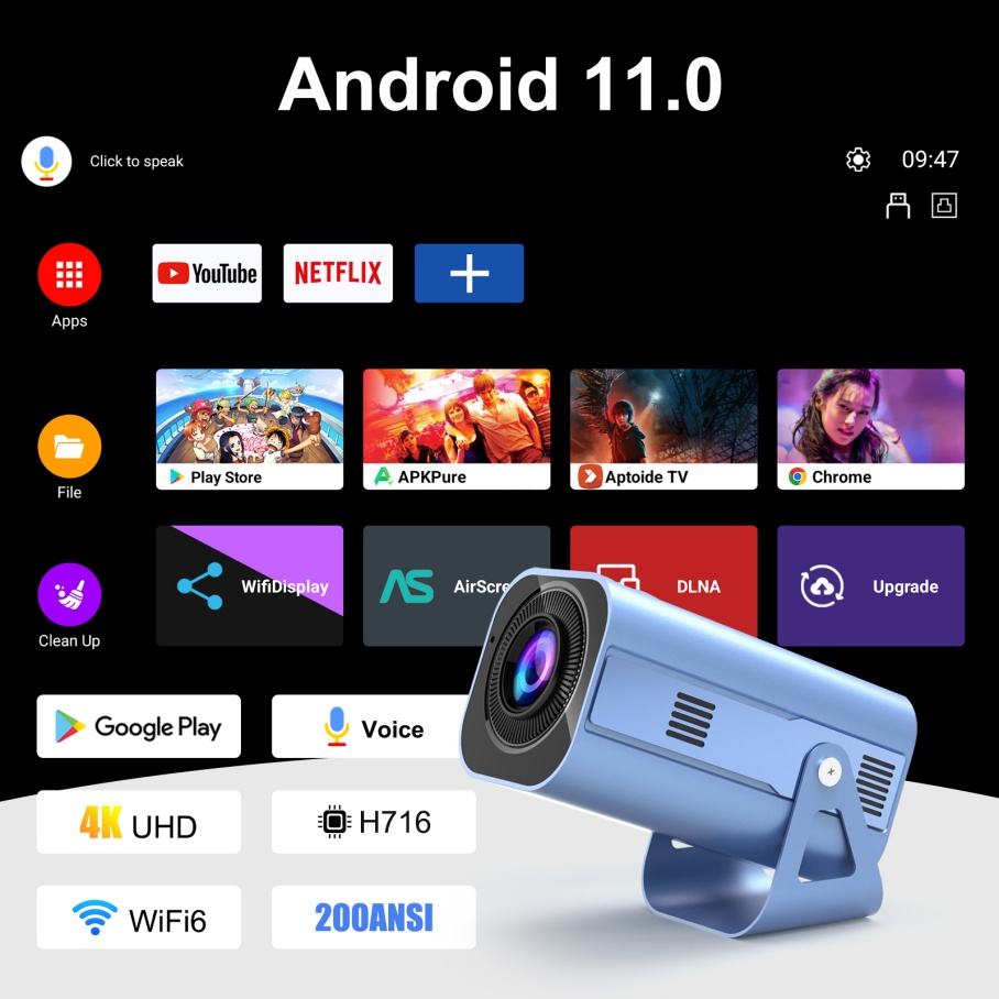 H96 B11สูงสุด200แอนเอสไอ720p โปรเจคเตอร์แอนดรอยด์11.0 OS WiFi 6GB โปรเจคเตอร์รอม16GB พร้อมรีโมทเสียง BT